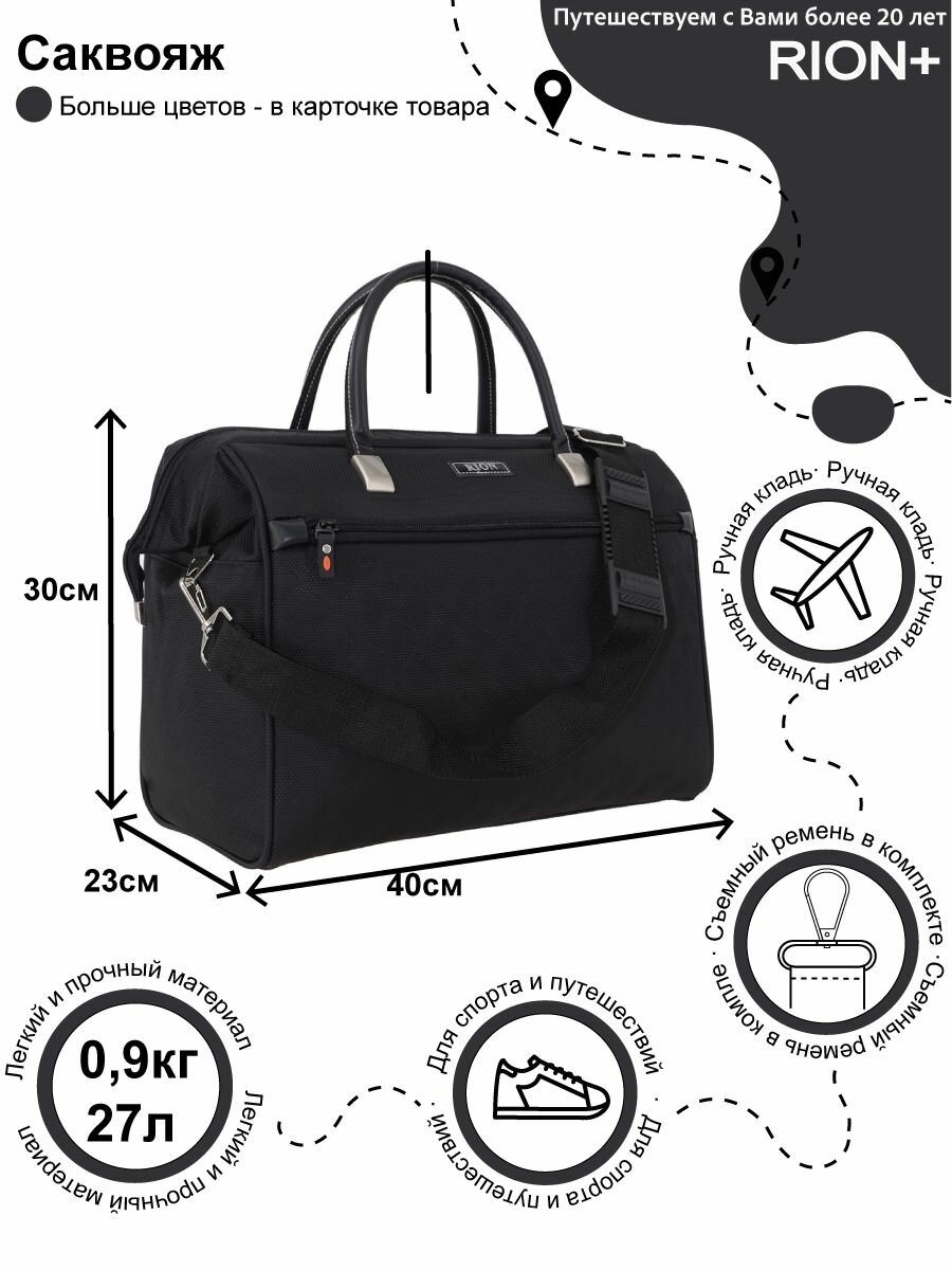 Купить Сумка дорожная для путешествий и спорта Рион+ (RION+) R233, 28 литра, саквояж, ручная кладь для самолета / поезда / авто, (до 25кг), черный