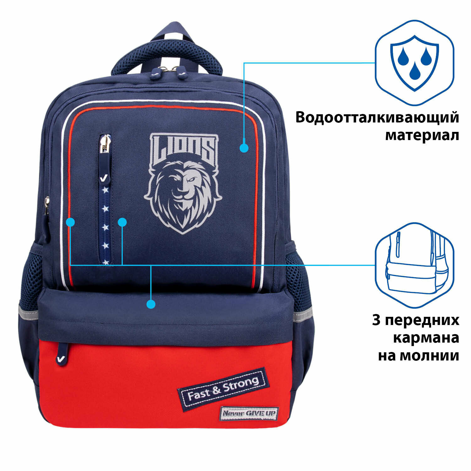 Рюкзак BRAUBERG STAR, 1 отделение, 5 карманов, "Brave lion", синий, 40х29х13 см, 270669