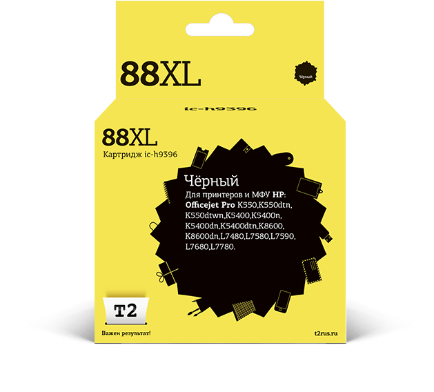 Картридж T2 ic-h9396 (88xl) Black для HP OJ Pro K550/K5400/K8600/L7480/L7590/L7680/L7780 .