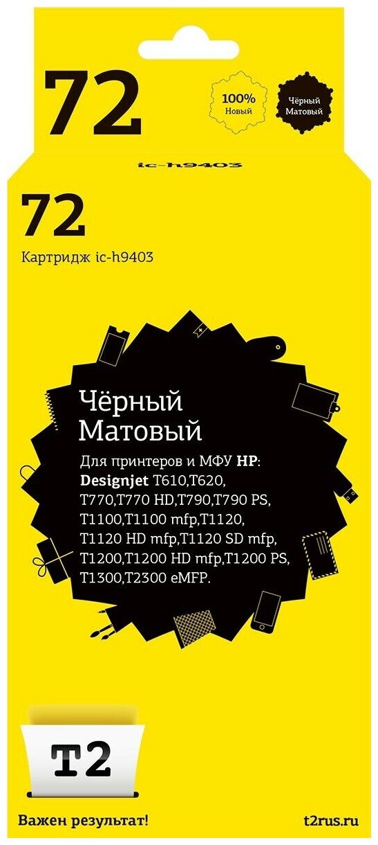 Картридж T2 ic-h9403 (72) Matt Black для HP DJ T610/620/770/790/1100/1120/1200/1300/2300 .