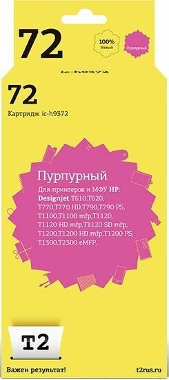 T2 Расходные материалы C9372A Картридж IC-H9372 72 для HP Designjet T610 T620 T770 T790 T1100 T1200 T1300 300, пурпурный, 600 стр.