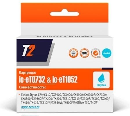 Картридж T2 C13T07324A, C13T0732/T1052/T1042, голубой / IC-ET0732