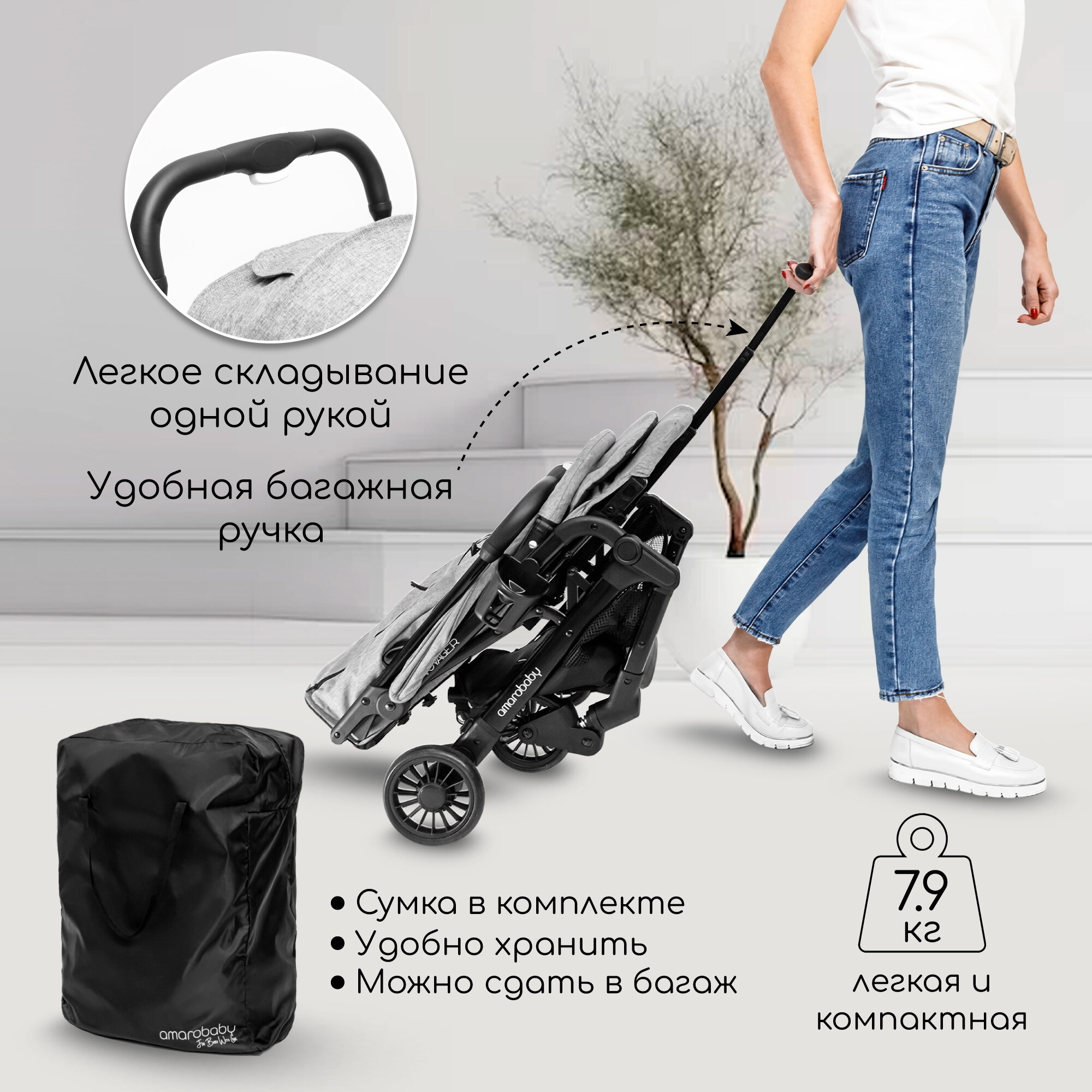 Прогулочная коляска Amarobaby VOYAGER черный (AB22-10VOYAGER/09)