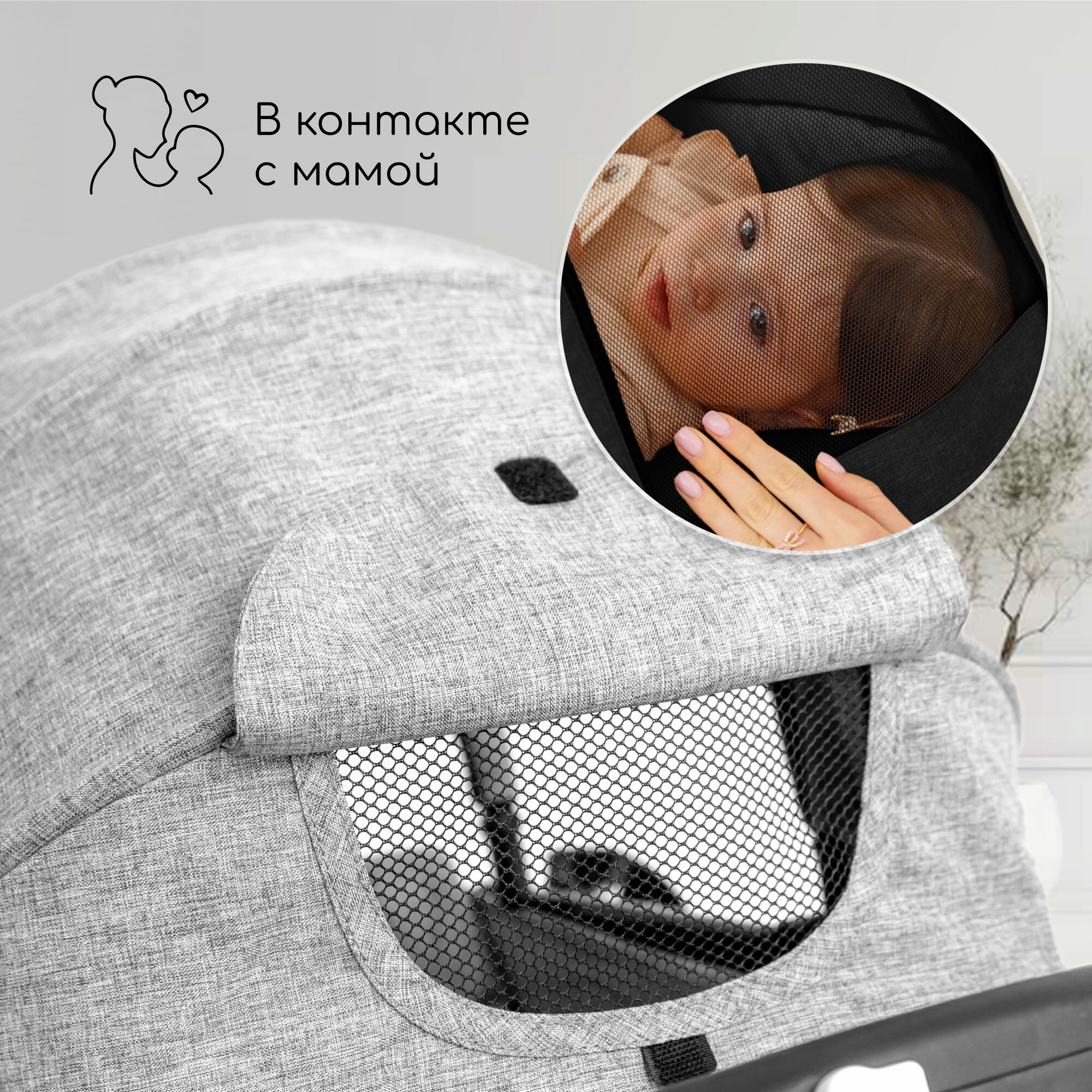 | Особенности | горизонтальное положение спинки, мягкие накладки на ремни, регулировка наклона спинки, ремни безопасности, смотровое окно |