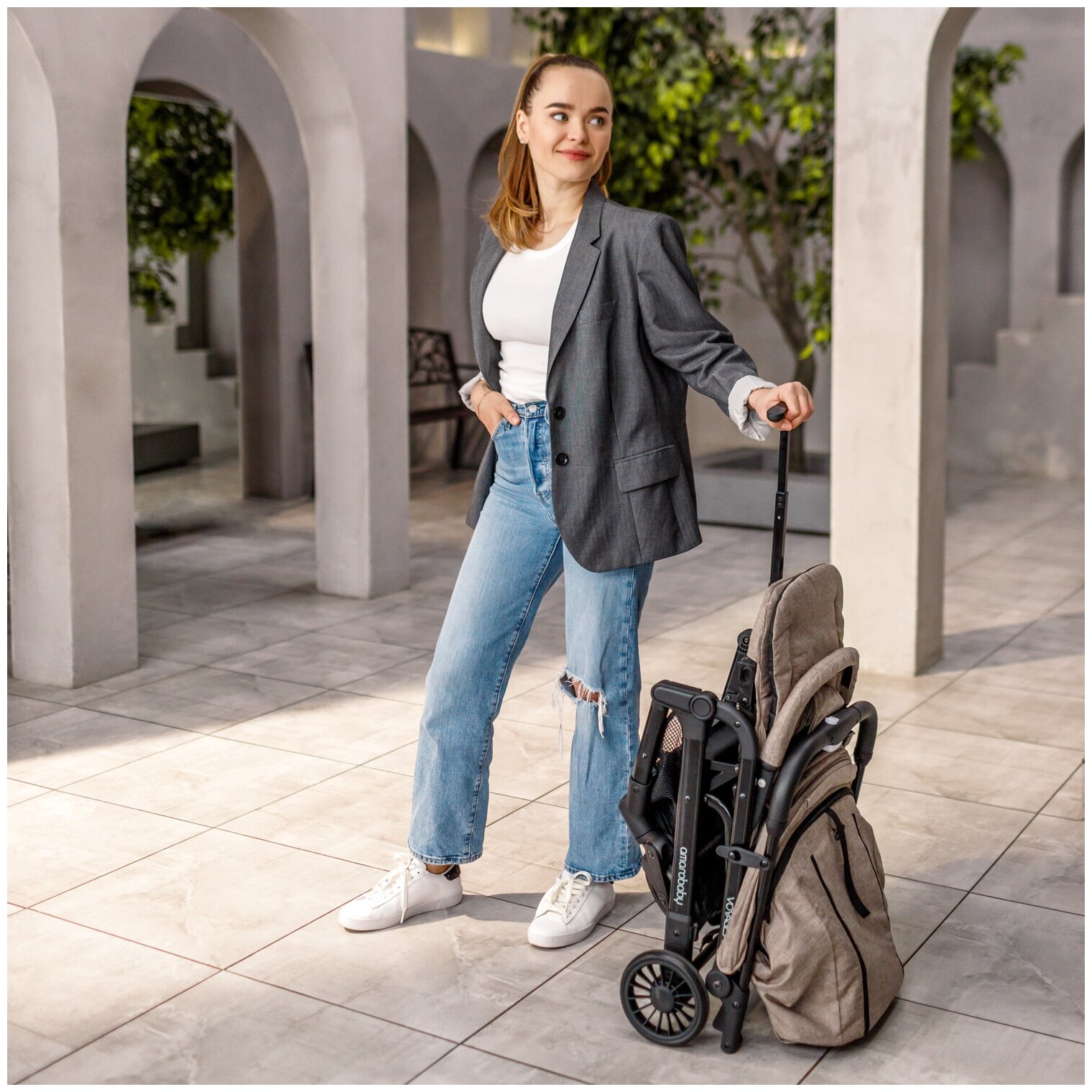 Прогулочная коляска Amarobaby Voyager, серый
