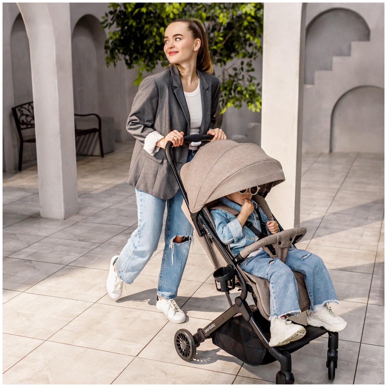 Купить Прогулочная коляска AMAROBABY VOYAGER, коричневый