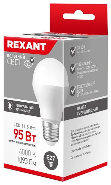 СДС ООО Лампа филаментная Rexant Груша А60, 11,5 Вт, 4000 К, Е27, нейтральный свет