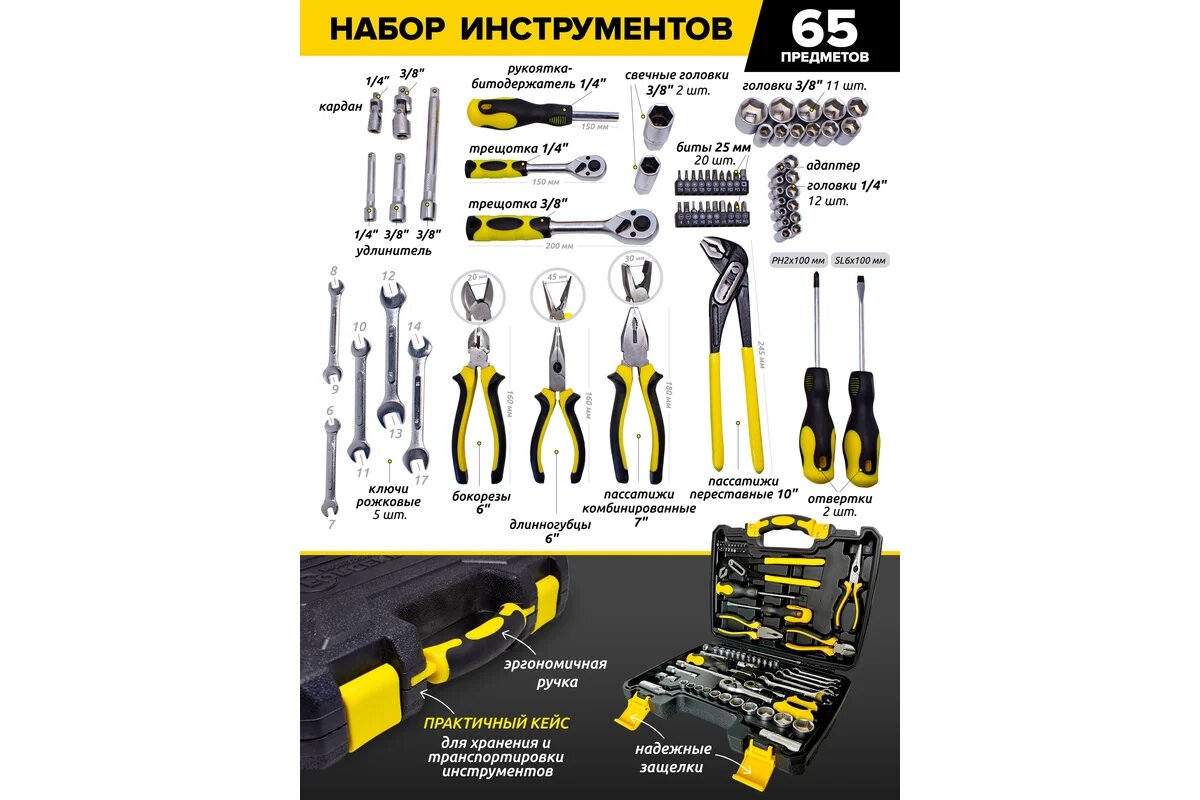 Набор инструментов 65пр. 1/4''3/8''(6гр.)(4-24мм) интересное:
