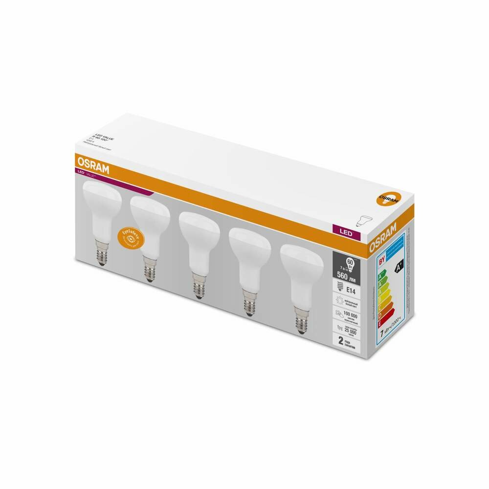 Лампочка светодиодная Е14 OSRAM LED Value R, 560лм, 7Вт, 4000К (нейтральный белый свет), упаковка 5 шт.