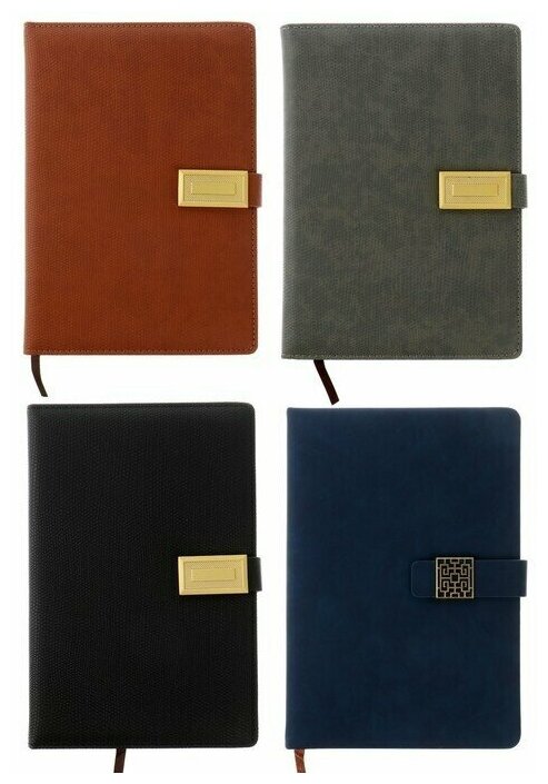 Ежедневник недатированный А5, 120 листов в клетку, с хлястиком обложка кожзам, микс