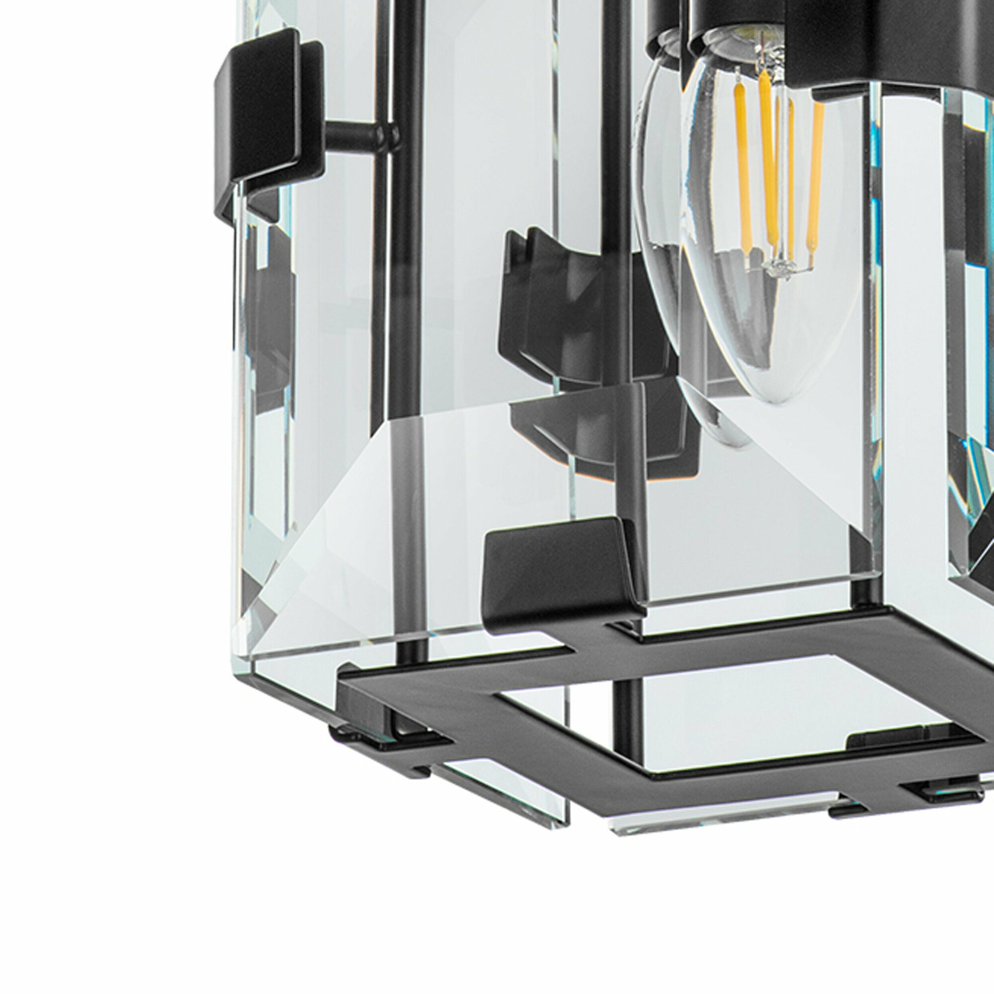| Плюсы: | качество материалов, проводов, сочетание черного матового металла и хрусталя, яркие лампочки |