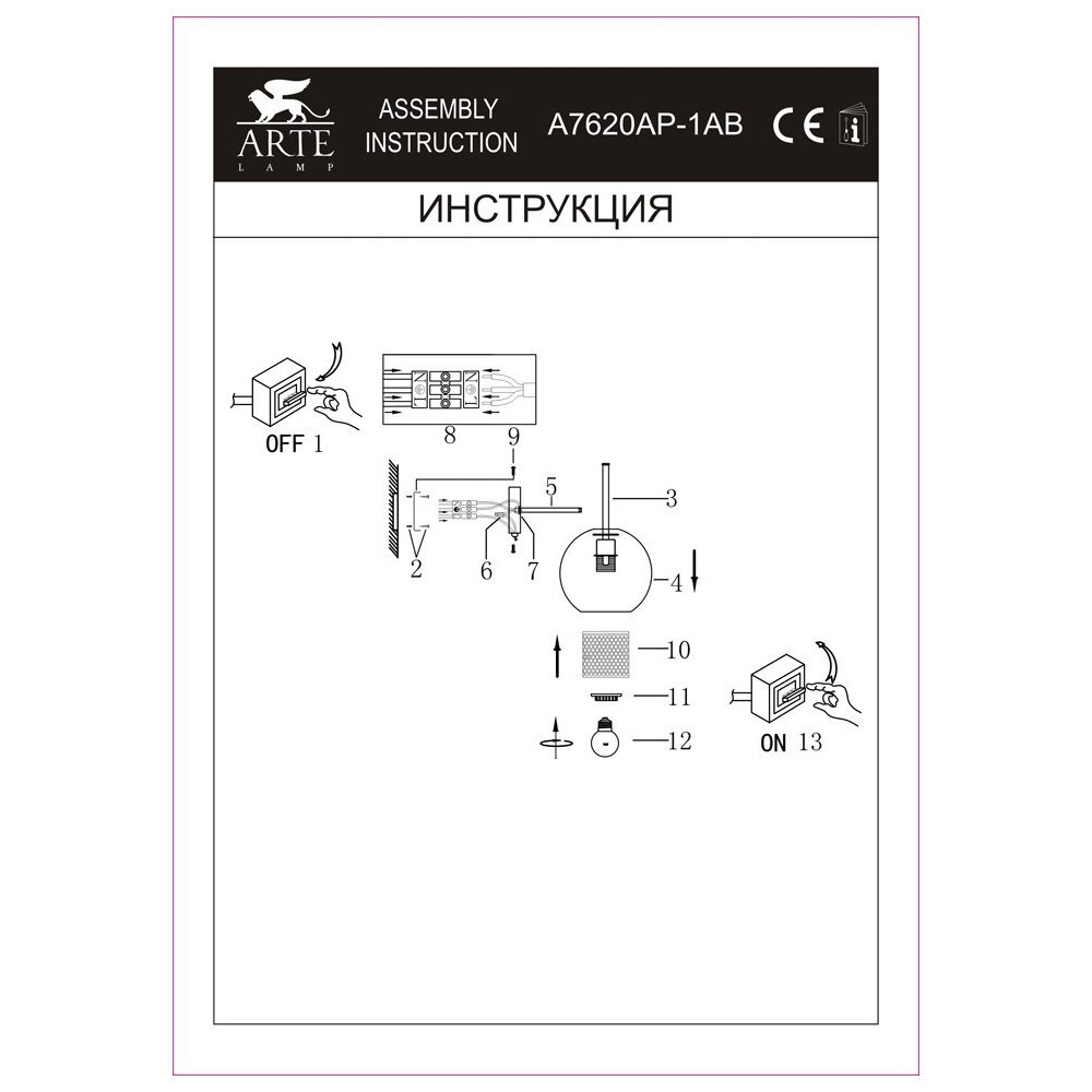 ARTE Lamp #ARTE LAMP A7620AP-1AB светильник настенный