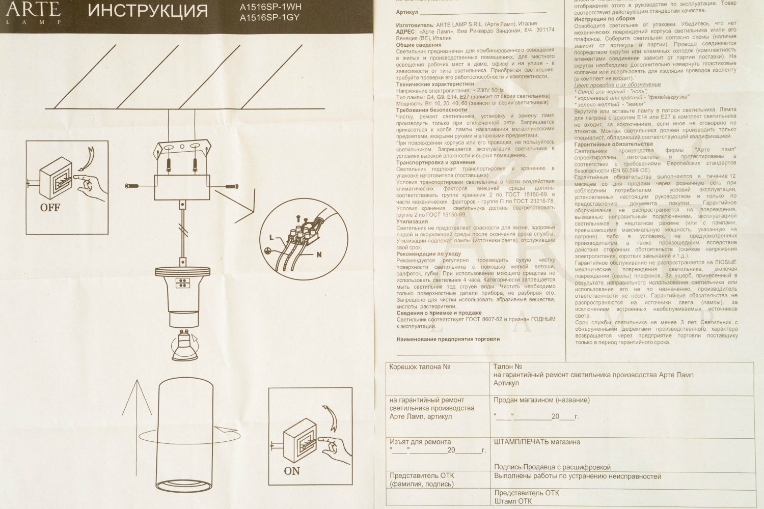 | Производитель | Arte Lamp |
