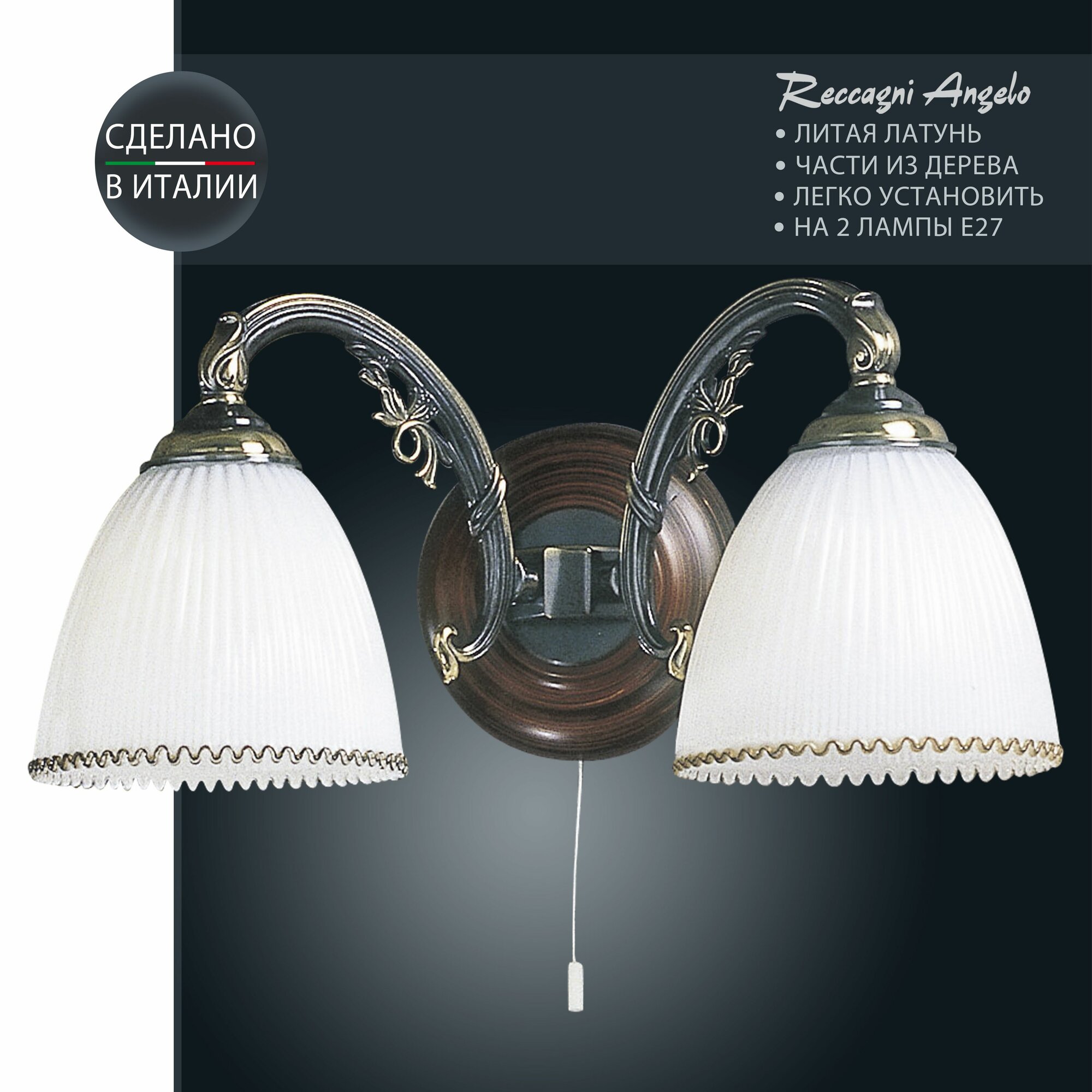 A 3800/2 Бра Reccagni Angelo, 2 плафона, бронза, дерево