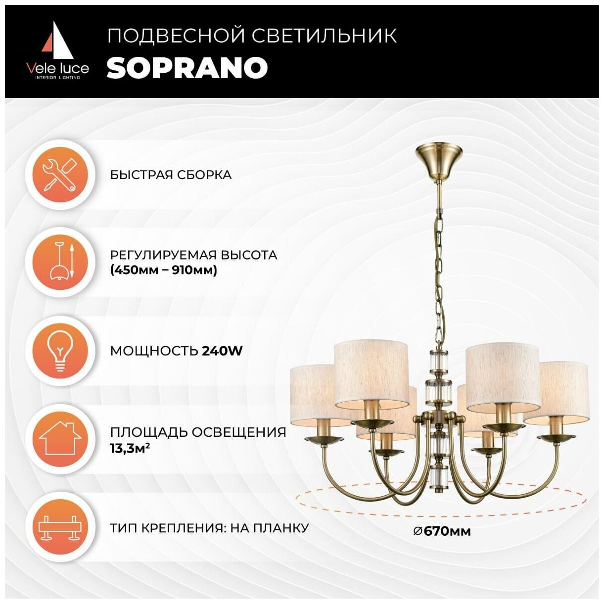 Подвесная люстра Vele Luce Soprano VL4194P06 интересное: