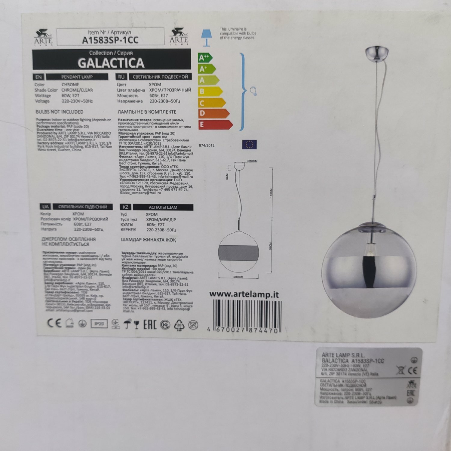 Ниже Вы можете прочитать отзывы на Подвесной светильник Arte Lamp Galactica A1583SP-1CC, ознакомится с подробными характеристиками, посмотреть интересные обзоры и фотографии на Подвесной светильник Arte Lamp Galactica A1583SP-1CC.