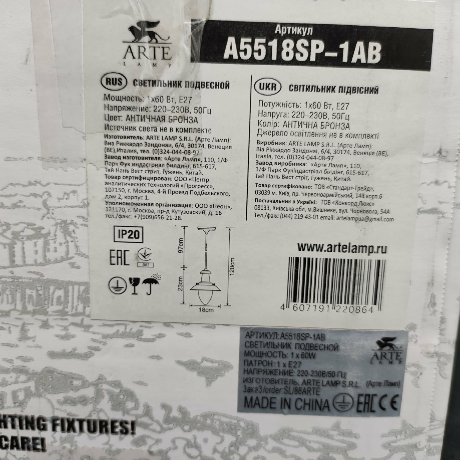 Ниже Вы можете прочитать отзывы на Светильник подвесной Arte lamp A5518SP-1AB Fisherman, ознакомится с подробными характеристиками, посмотреть интересные обзоры и фотографии на Светильник подвесной Arte lamp A5518SP-1AB Fisherman.
