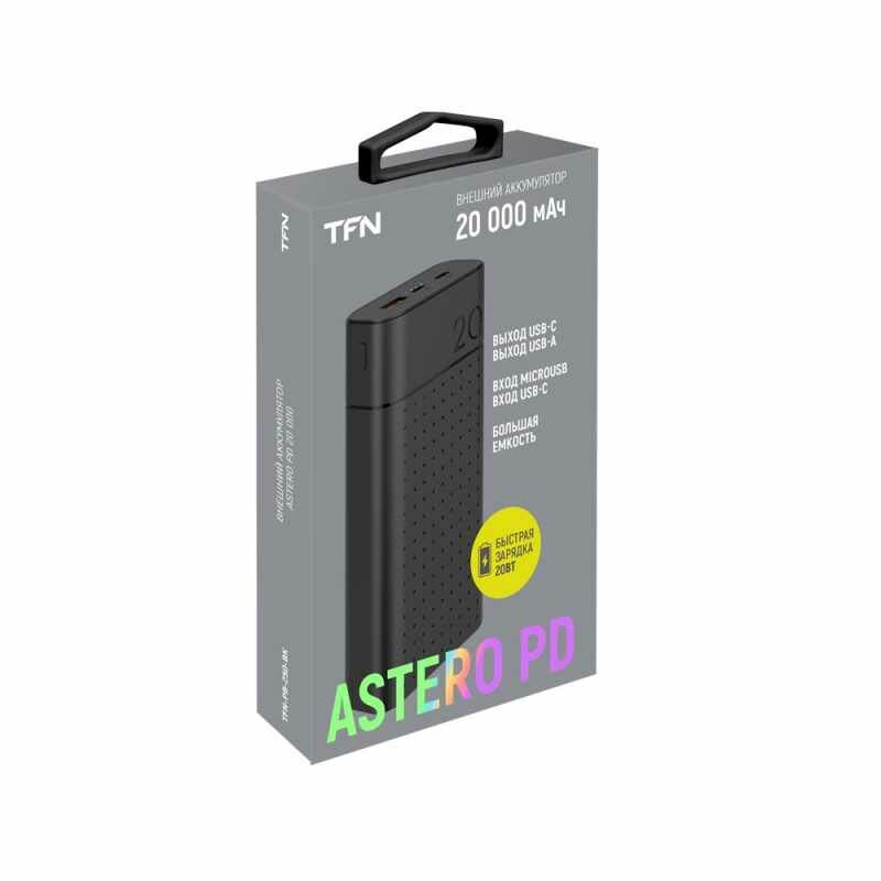 Внешний аккумулятор на 20000 mAh, TFN Astero 20 PD, чер(TFN,TFN- PB-250-BK), 1 шт.