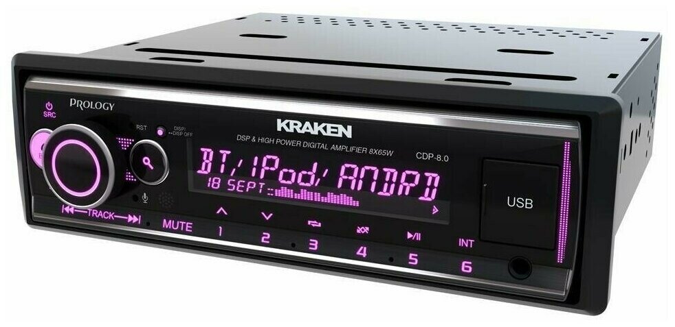 Автомагнитола PROLOGY CDP-8.0 KRAKEN, 1DIN, 8 канальная, BT/FM/USB/аудиопроцессор DSP, FM/ УКВ/MP3/WAV/FLAC, управление телефоном через BT