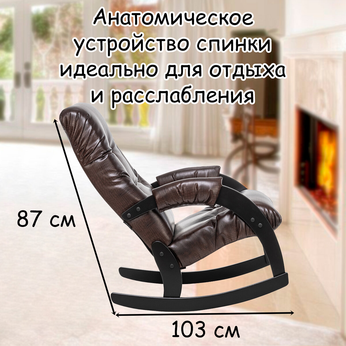 Кресло-качалка для взрослых 54х95х100 см, модель 67, экокожа, цвет: Oregon pearlamutr 120 (коричневый), каркас: Venge (черный)