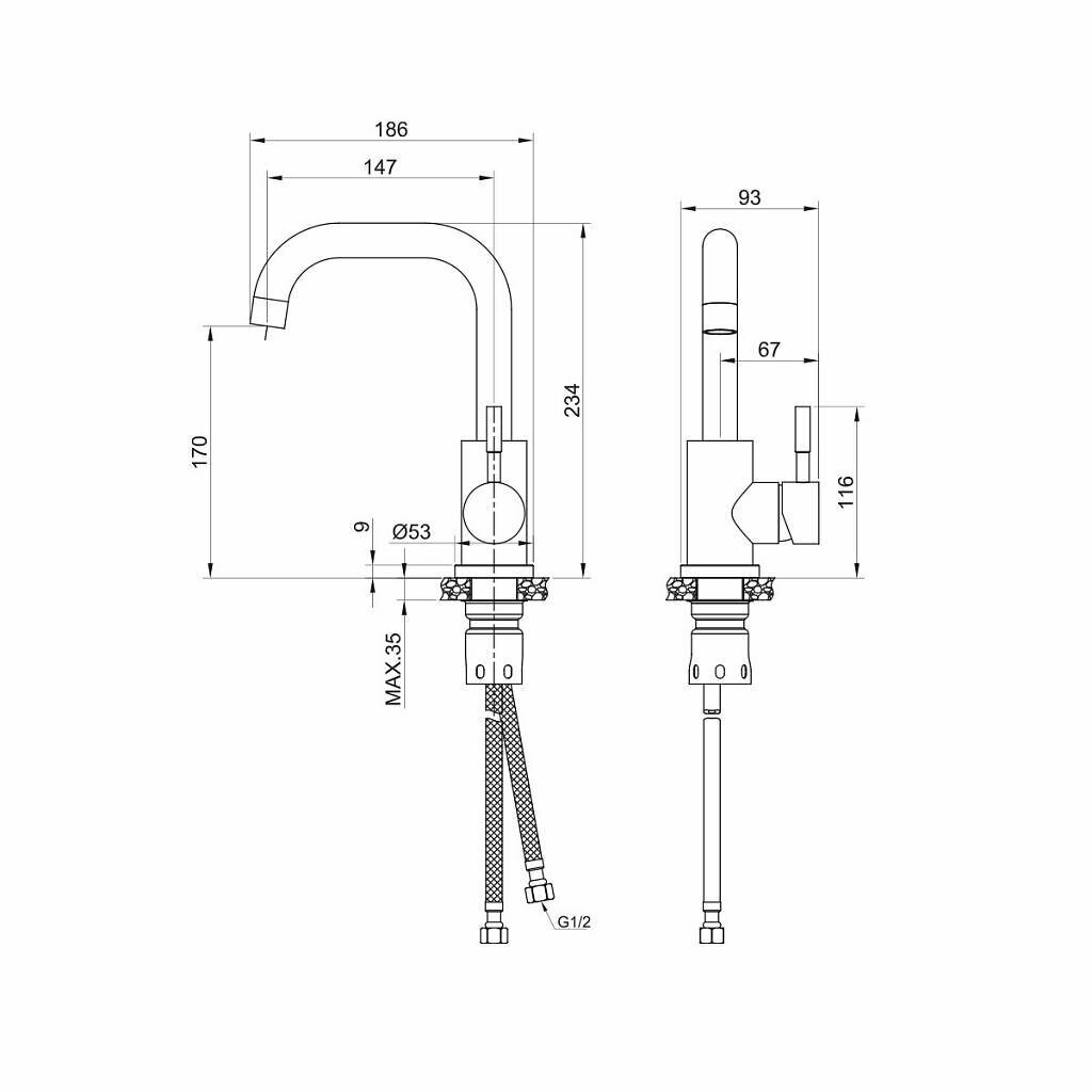 | Комплектация | Смеситель,гибкая подводка (2 шт по 40 см), инструкция по установке, гарантийный талон. |