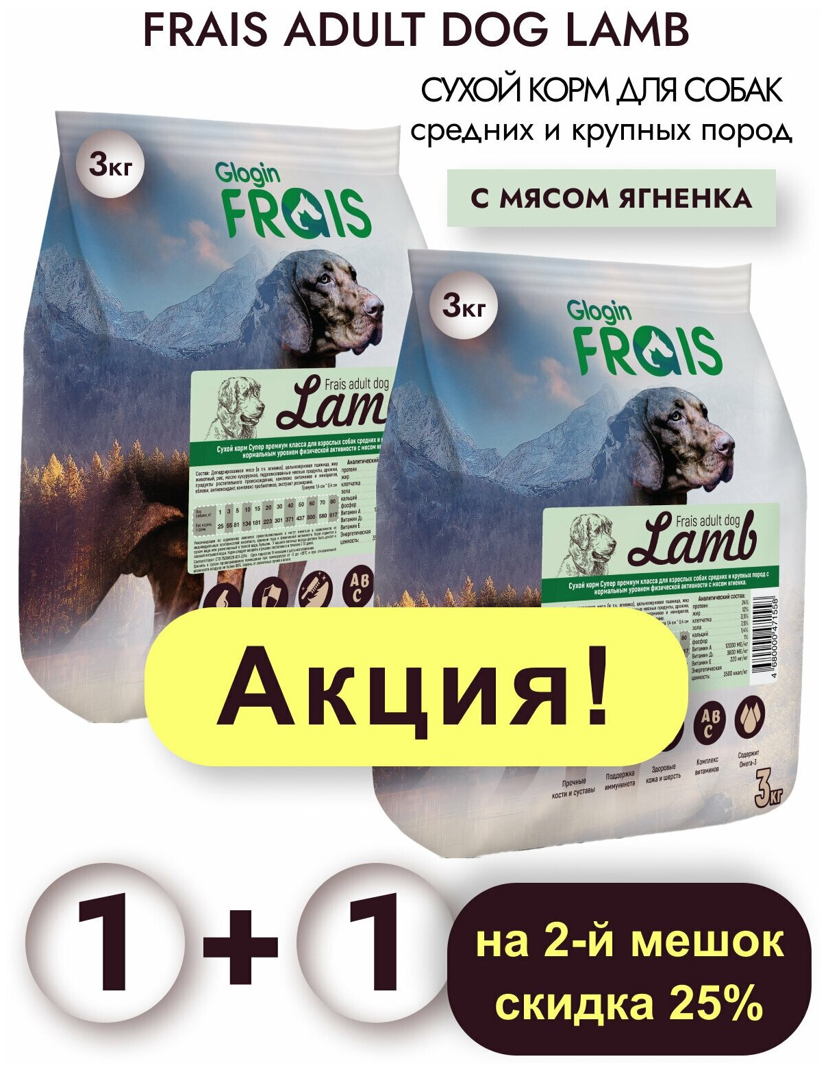 Сухой корм Frais Adult Dog Lamb для взрослых собак средних и крупных пород с мясом ягненка, 2шт х 3кг интересное: