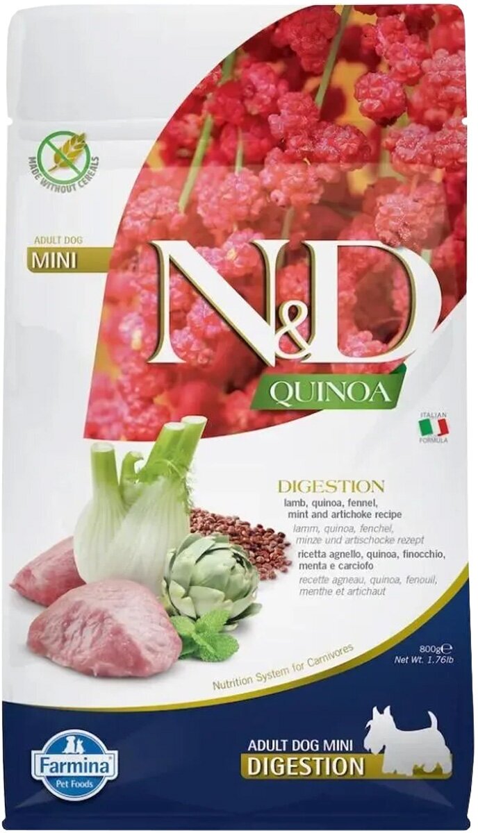 FARMINA DOG N&D GRAIN FREE QUINOA ADULT MINI DIGESTION LAMB беззерновой для взрослых собак маленьких пород с чувствительным пищеварением с ягненком и киноа (0,8 кг)