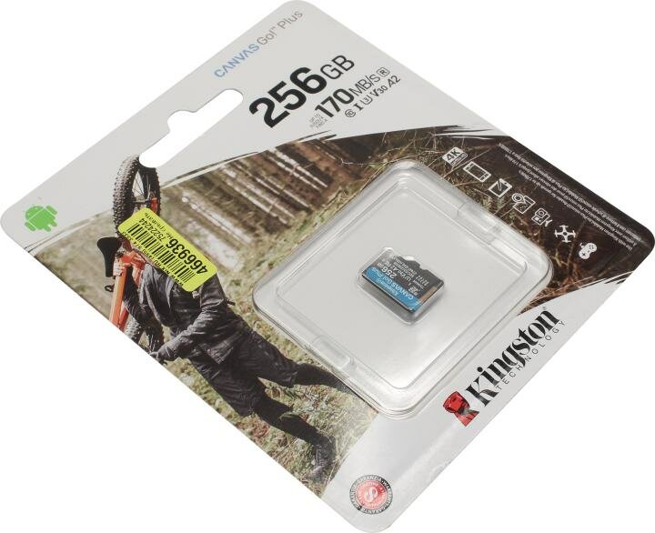 Карта памяти Kingston CANVAS Go! Plus - SDCG3/256GB - microSDXC UHS-I, U3, V30, A2 - 170/90МБ/с без адаптера