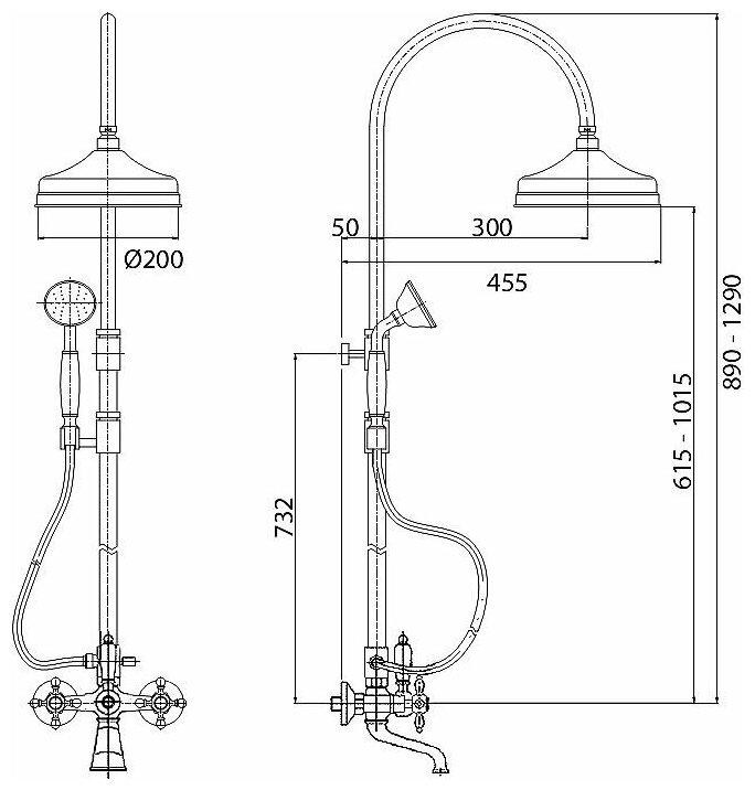 | Дополнительная информация | диаметр душевой лейки: 82 мм; диаметр верхнего душа: 200 мм |
