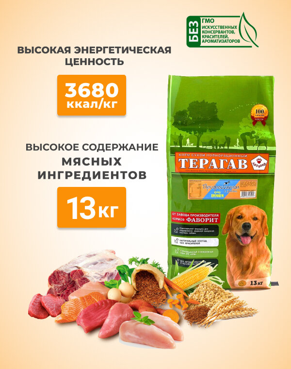 Терагав профессионал для активных взрослых собак всех пород с рисом (13 кг) интересное: