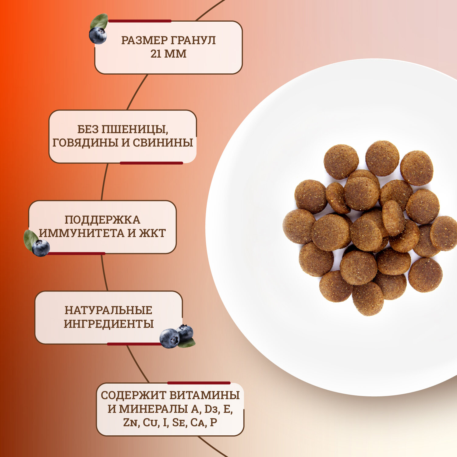 | Плюсы: | У нас три собаки разного размера (от 20 до 50 кг) и возраста, этот корм подошёл всем троим, и по составу, и по размеру гранул, что очень удобно. Гранулы мягче, чем в других сухих кормах.