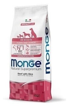 Monge Dog Monoprotein Puppy&Junior корм для щенков всех пород, говядина с рисом 12 кг