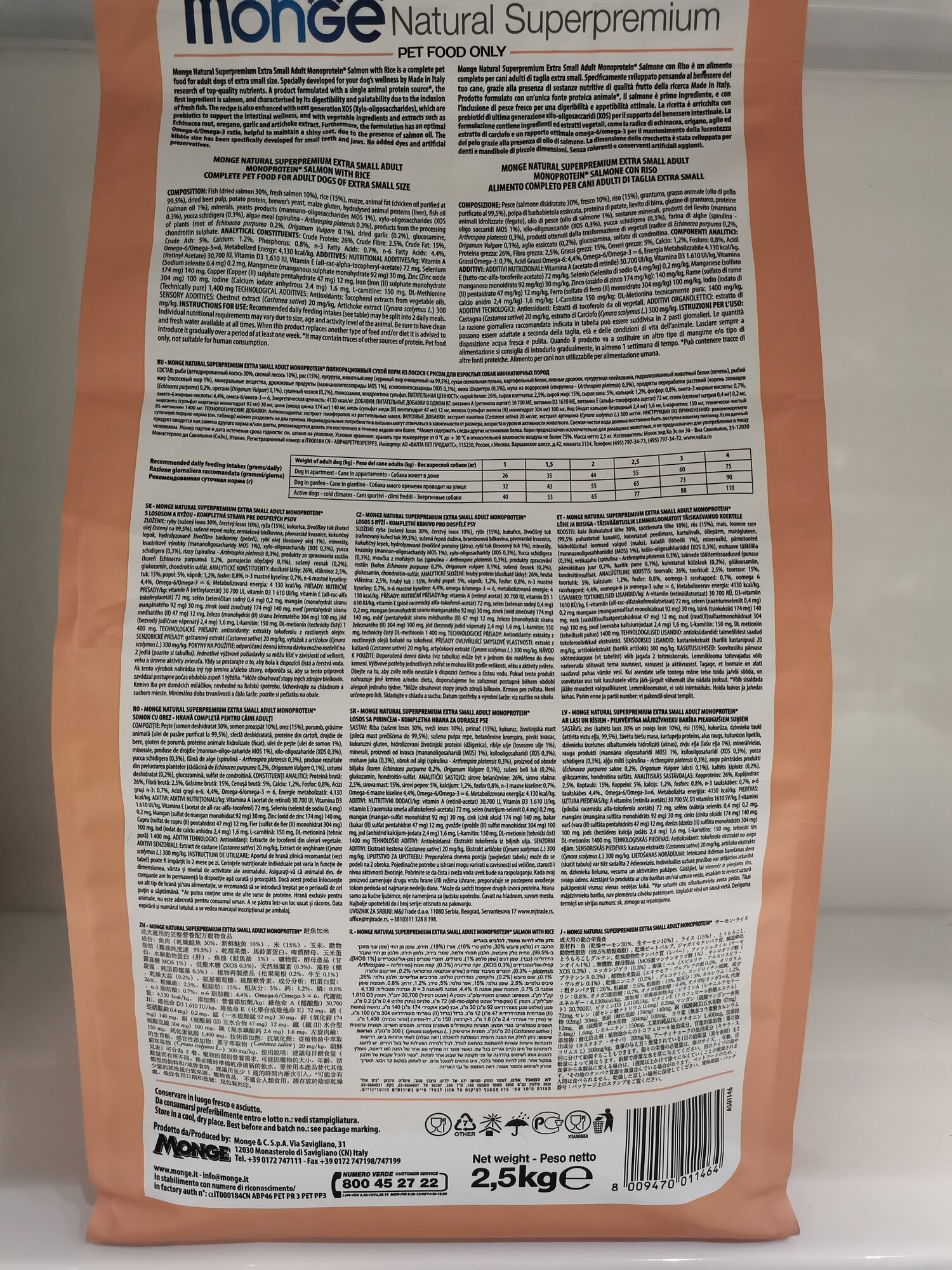 Monge Dog Monoprotein Extra Small корм для взрослых собак миниатюрных пород лосось с рисом 2,5 кг х 6 шт.