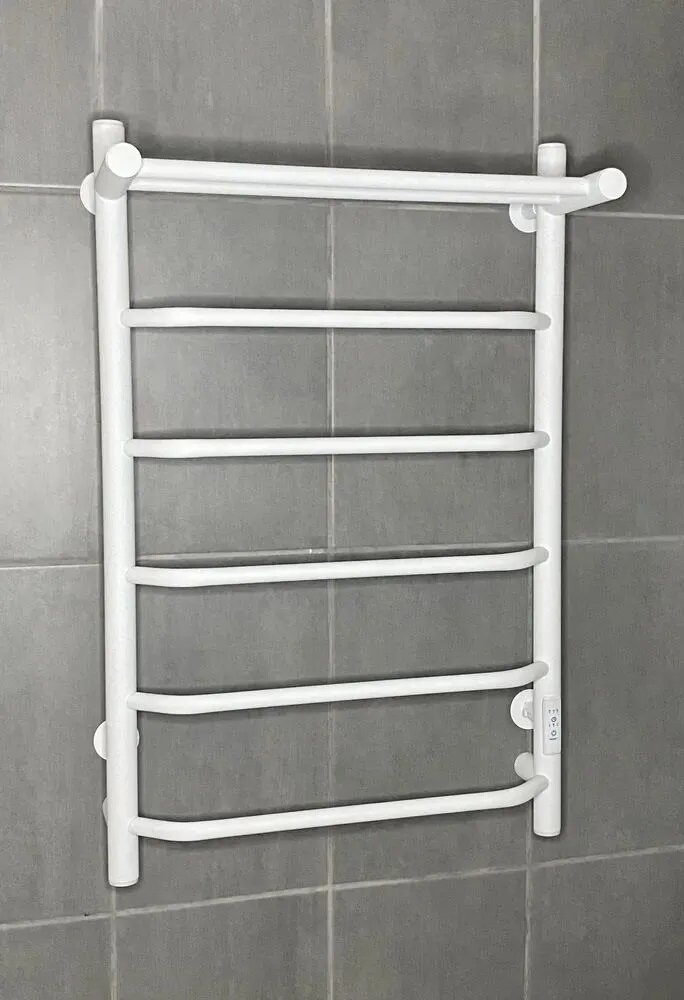 Полотенцесушитель электрический Тругор 500мм 800мм форма лесенка цвет белый матовый 5 перекладин с полкой универсальное подключение: