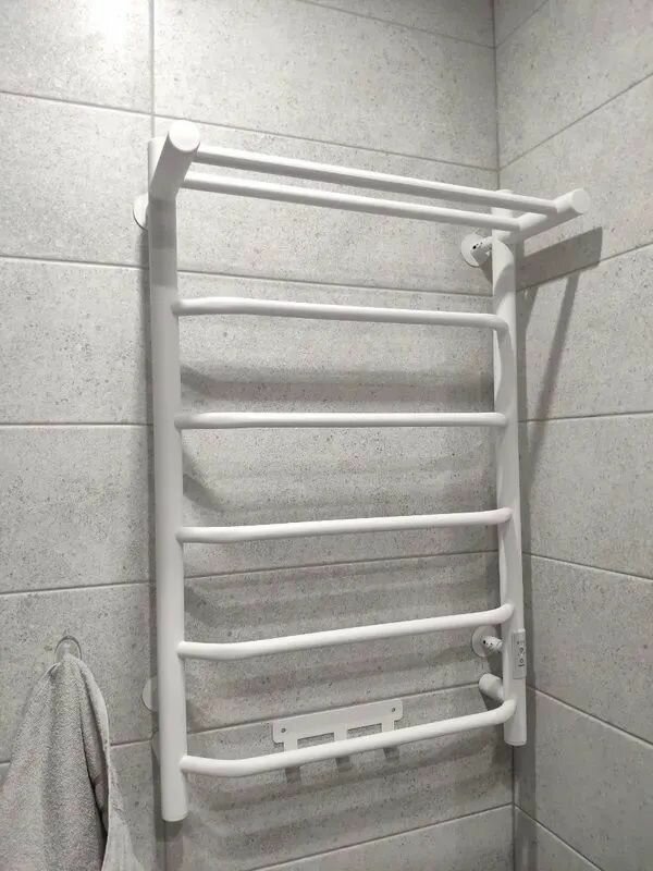 | Плюсы: | Перекладины далеко от стены, удобно развешивать, выключать когда не нужен, выставлять нужную температуру |