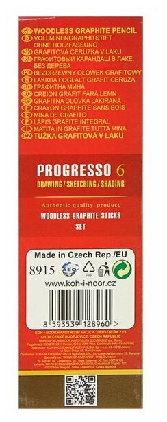Чернографитовые карандаши KOH-I-NOOR Набор карандашей чернографит. без дерева "Progresso" KOH-I-NOOR, 6шт. (HB-8B и акварельный)