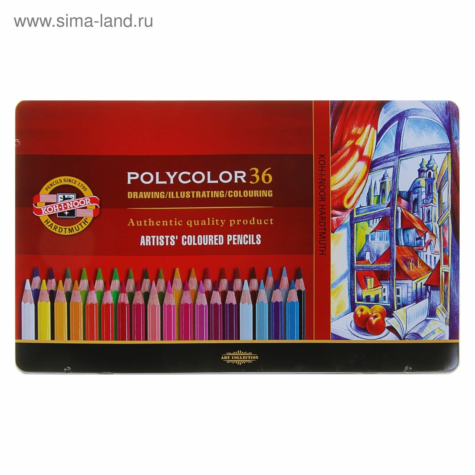 Карандаши цветные художественные Koh-I-Noor "Polycolor" 36цв., заточен., метал. пенал (арт. 132741)