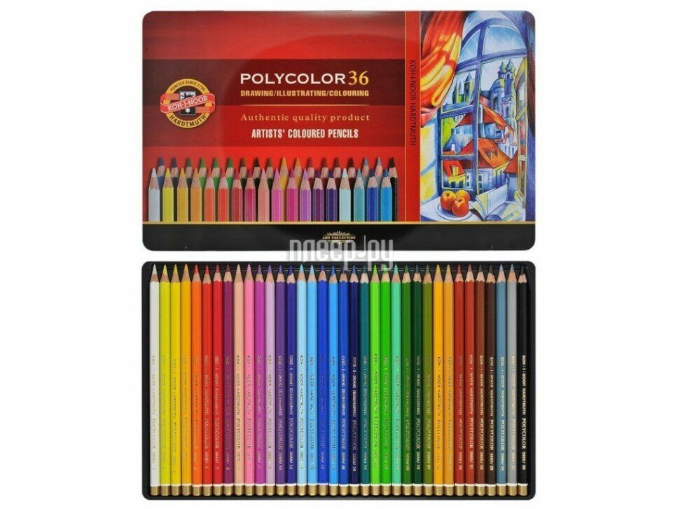 Карандаши цветные KOH-I-NOOR художественные "Polycolor", 36 цветов, 3,8 мм, металлическая коробка (3825/36)