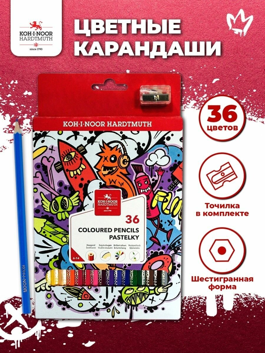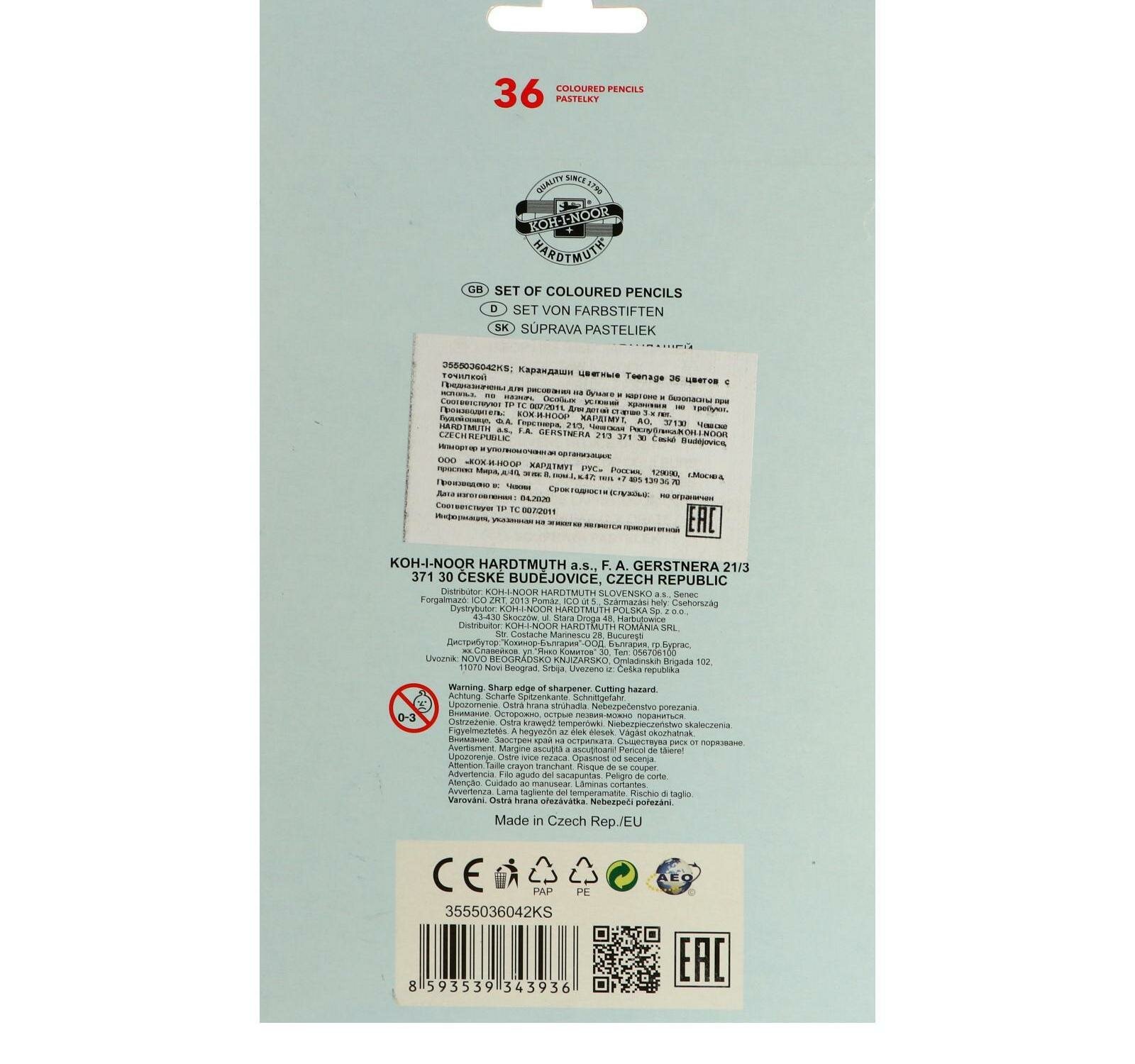 Карандаши цветные KOH-I-NOOR "Teenage", 36 цветов, заточенные, картон, европодвес (3555036042KSRU)