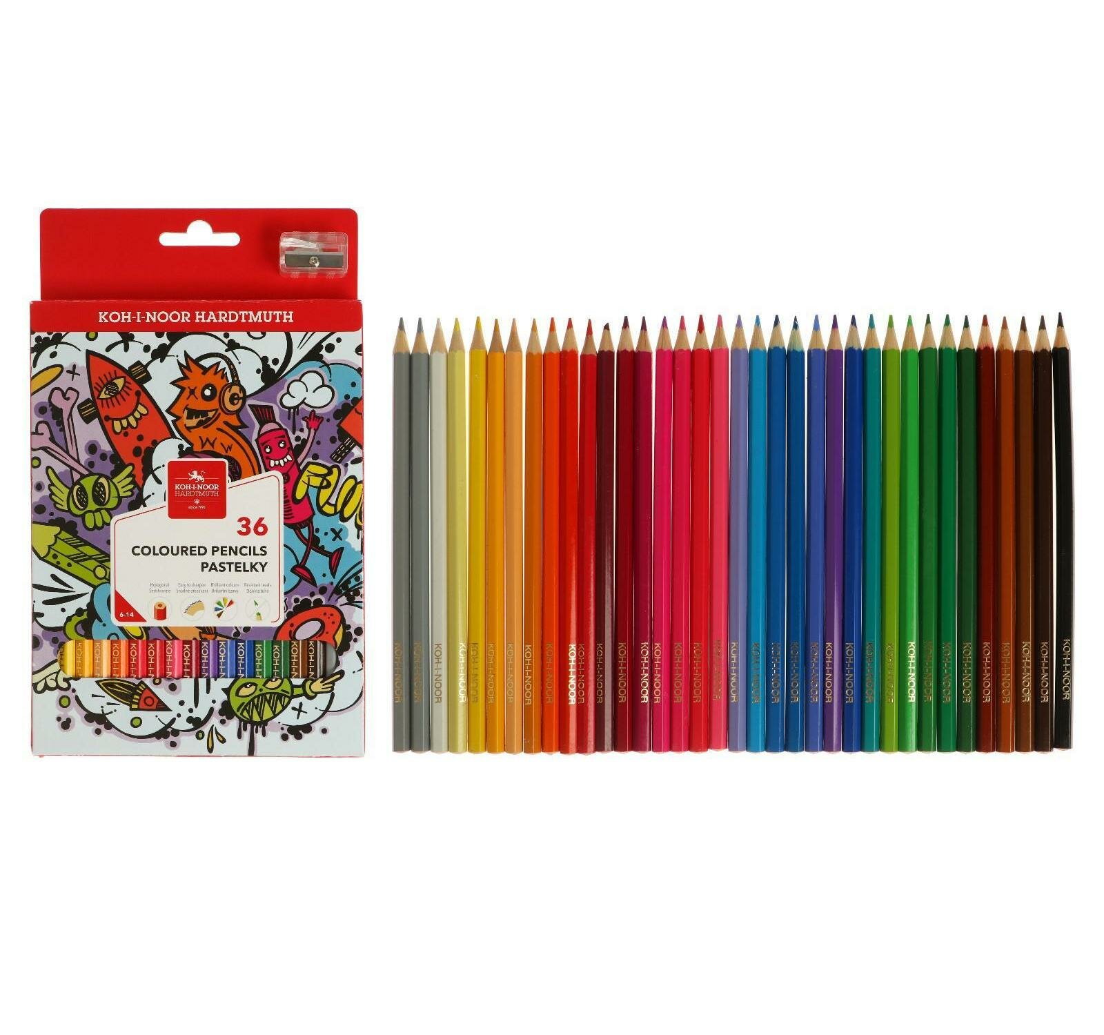 Карандаши цветные Koh-i-Noor, шестигранные, толщина грифеля 3 мм, набор 36 цветов + точилка