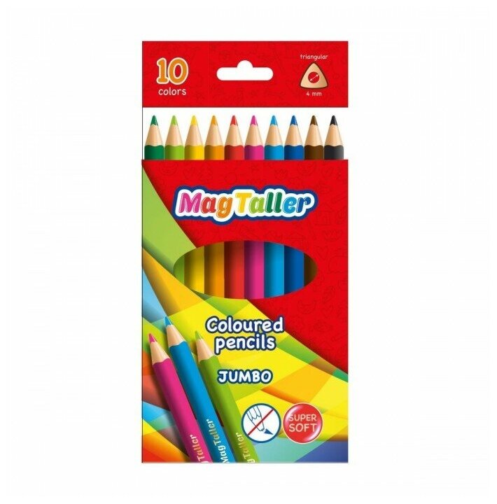 Купить Набор цветных трехгранных карандашей JUMBO MagTaller 10 цветов