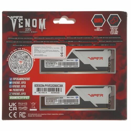 Модуль памяти 32 GB Patriot Viper Venom PATRIOT PVV532G560C36K DIMM, DDR5, 5600 МГц KIT2