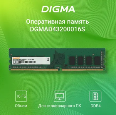 Оперативная память DIGMA DIMM DDR4 16GB PC4-25600 3200MHz (DGMAD43200016S)