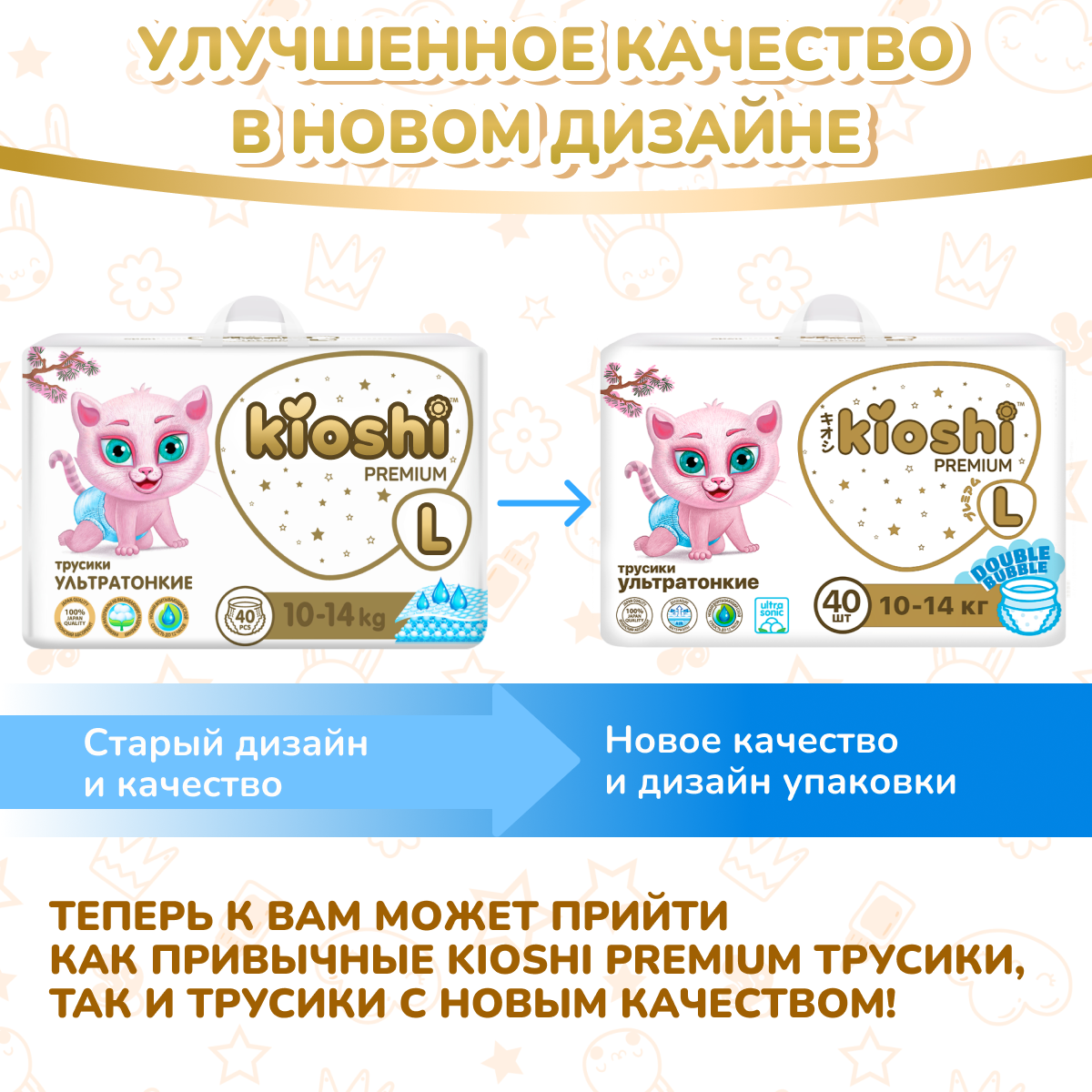KIOSHI Подгузники-трусики KIOSHI PREMIUM , Ультратонкие, L 10-14 кг, 40 шт