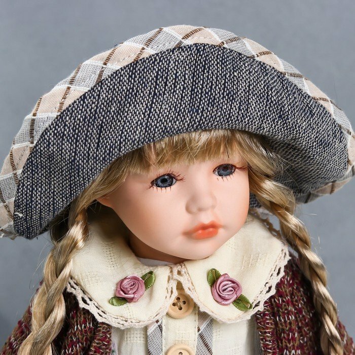 Кукла коллекционная керамика "Лаура в сером платье, коричневом джемпере" 40 см (1 шт.)