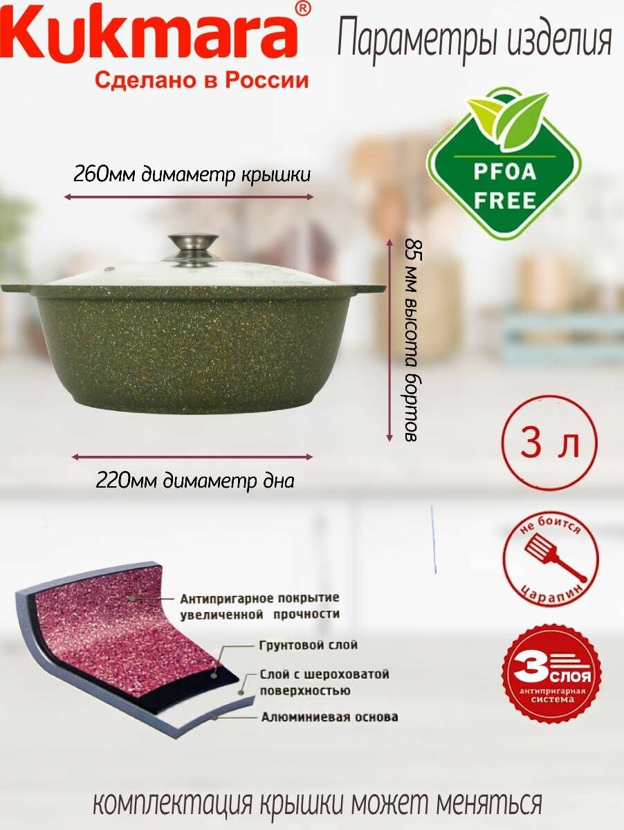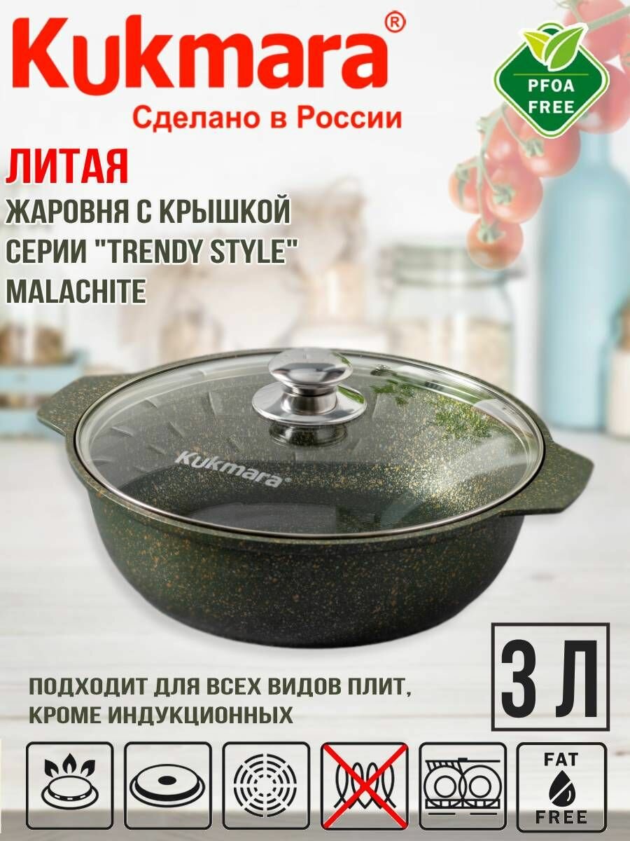 СохранитьЖаровня Kukmara 3л с антипригарным покрытием, литой алюминий, стеклянная крышка 26см, цвет Malachite, ж31tsml интересное: