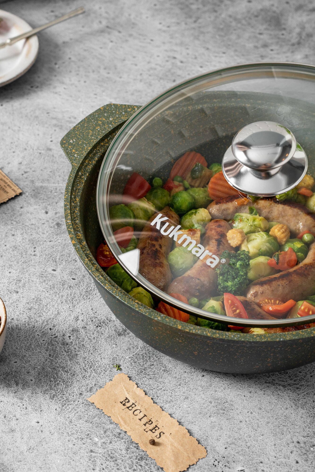 Купить Жаровня Kukmara 3л с антипригарным покрытием, литой алюминий, стеклянная крышка 26см, цвет Malachite, ж31tsml