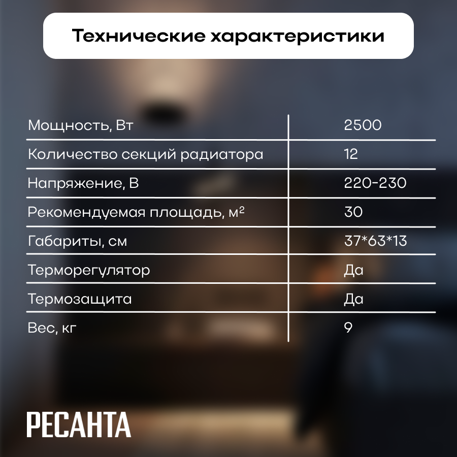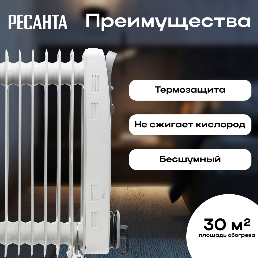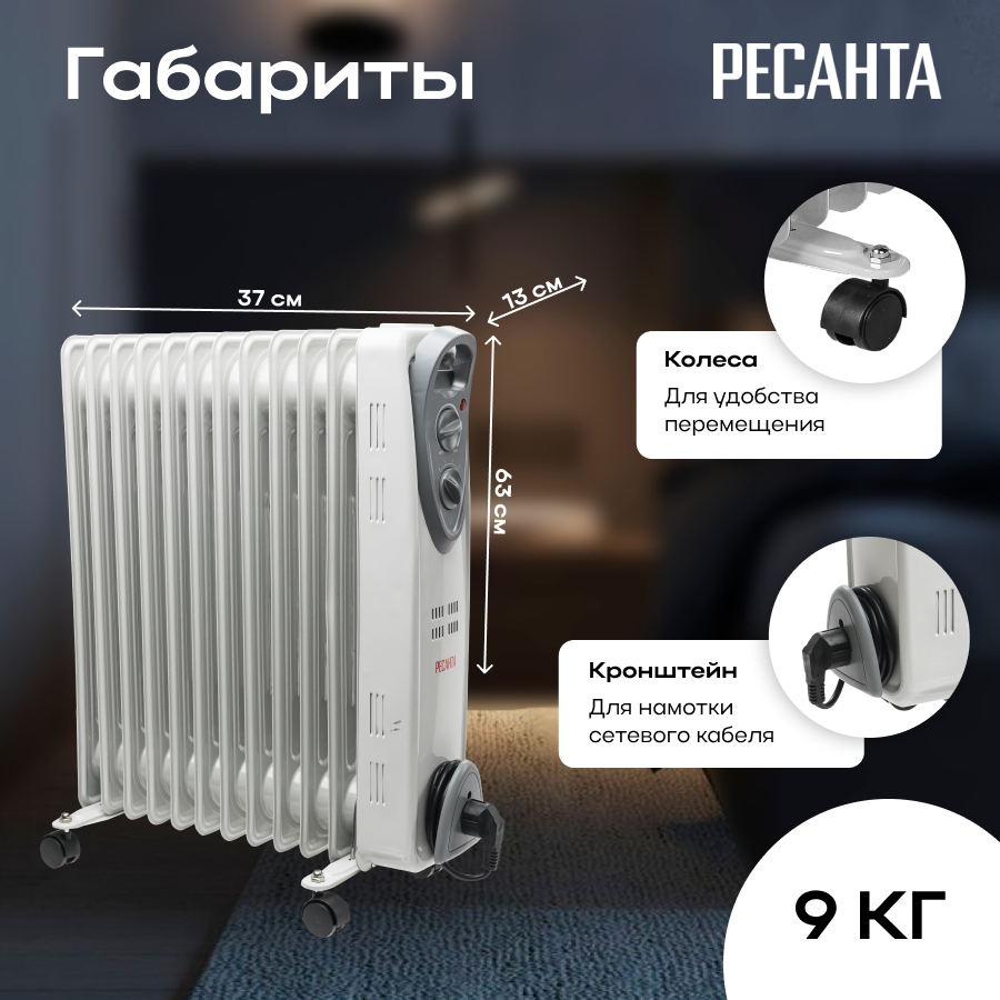 Масляный радиатор РЕСАНТА ОМ-12А (2,5 кВт), 67/3/21