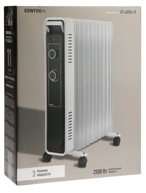 Обогреватель Centek Ct-6224-11, масляный, напольный, 2500 Вт, 25 м2, 11 секций, бело-чёрный Centek 9 .