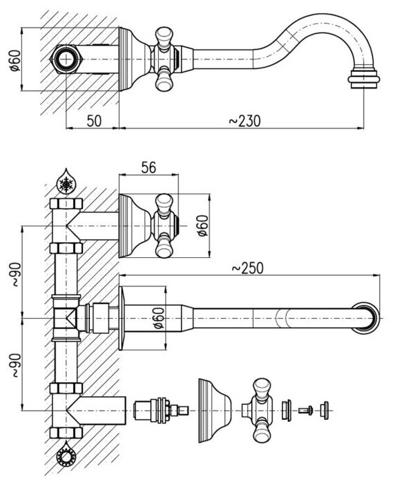 Смеситель RAV Slezаk Morava retro для умывальника, срытого монтажа